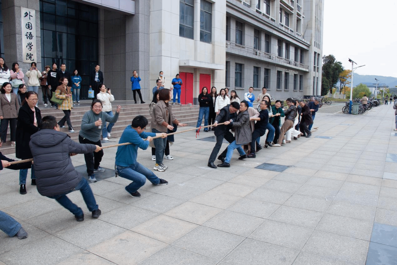 九游·官方网站分工会于2023年11月22日下午,在外语楼南门广场前举办“一根绳一条心 齐拼搏共奋进”教职工拔河活动。此次活动以教研室、科室为活动组织单位,全体教职工共同参与。