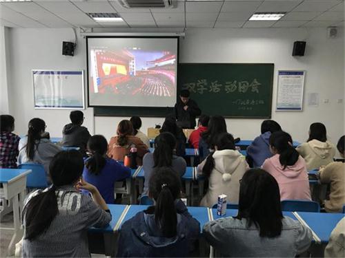 清明假期前夕的周三下午,很多学生都选择了归途,然而在九游·官方网站教室内传出诵读的声音——班级团支部书记带领团员开展“双学”活动,把学习宣传贯彻党的十九大精神与习近平新时代中国特色社会主义思想引向深入。
