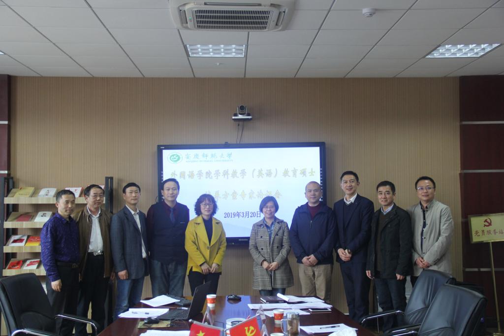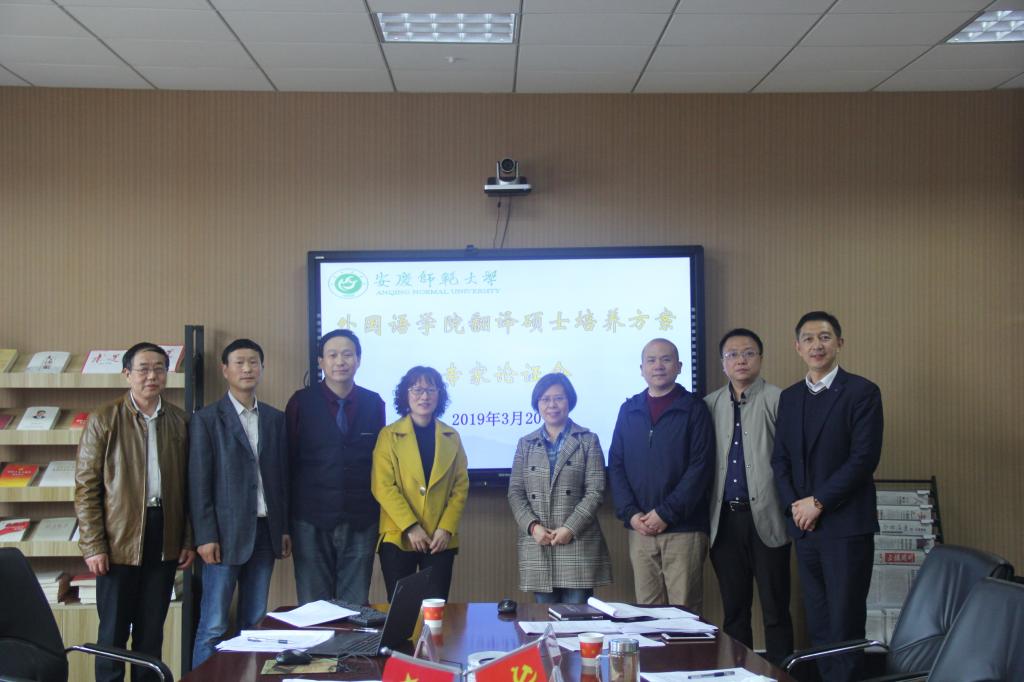 东南大学九游·官方网站MTI中心主任郭庆、瑞科翻译公司总经理左仁君、安庆市教研室副主任陈俊、安庆市第七中学特级教师檀宜平应邀指导两个学位点培养方案。会议由九游·官方网站硕士点点长王先荣教授主持。