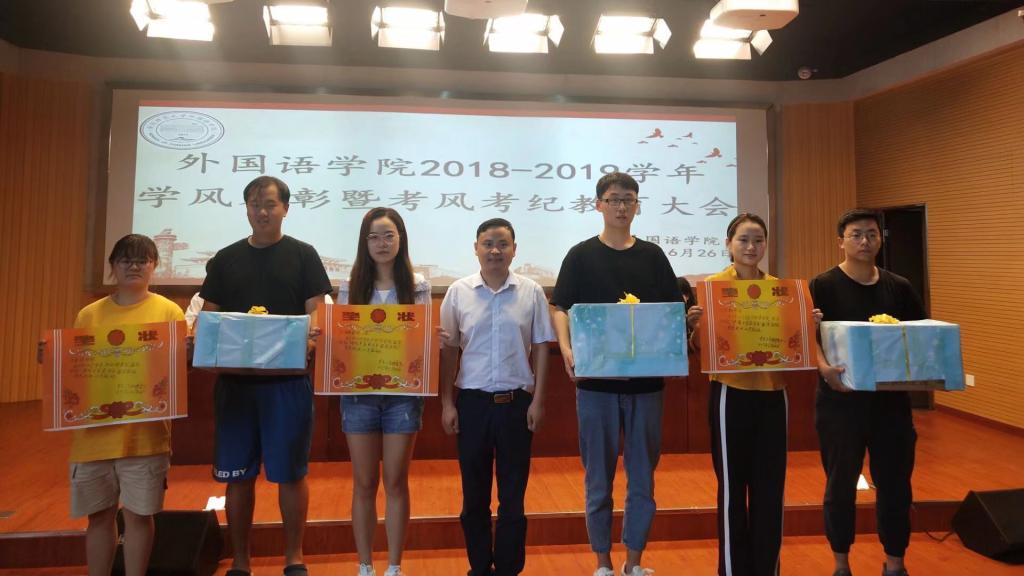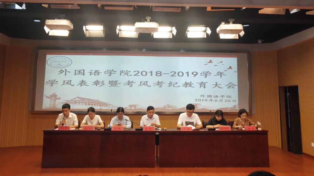 6月26日九游·官方网站召开“2018-2019学年学风表彰暨考风考纪教育大会”。九游·官方网站党委副书记夏斐和学工组全体辅导员出席会议,16-18级学生干部代表、全体学生党员和学生代表参会。