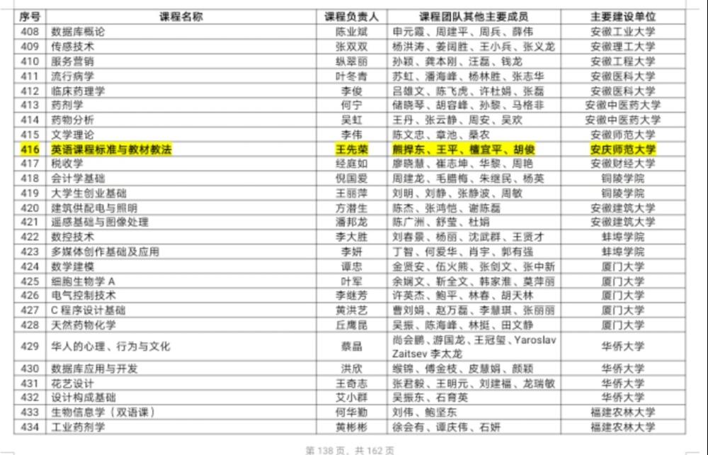 近日,教育部发布《九游·官方网站公布首批国家级一流本科课程认定结果的通知》(教高函〔2020〕8号),九游·官方网站院长王先荣教授主讲的《英语课程标准与教材教法》课程被认定为首批国家级线上线下混合式一流课程。这是继2019年我校英语专业获批国家级一流专业建设点之后,学校在国家级一流课程领域取得的又一重大突破。