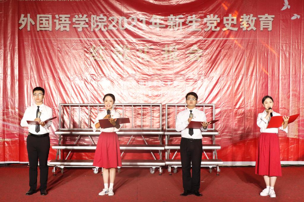 一首首红歌道尽党的百年风雨征程,唱响了青年学生的使命担当与朝气蓬勃,最终,汇报会在朗诵《党的赞歌》中落下帷幕。