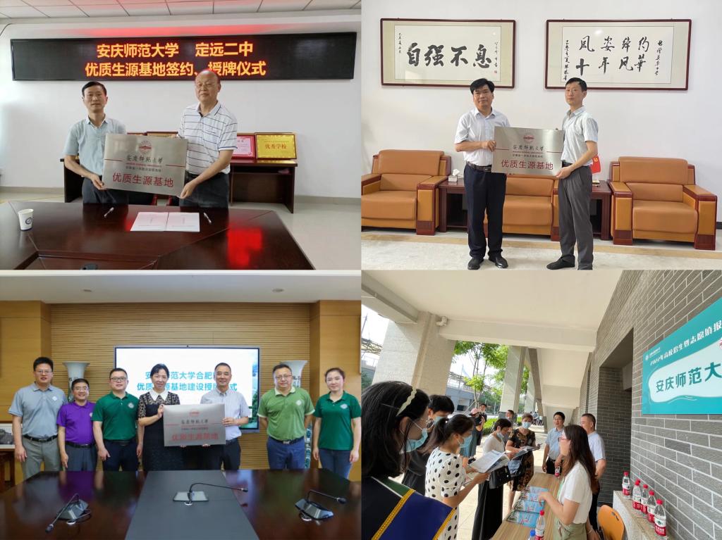 九游·官方网站招生宣传组先后走访了合肥四中、定远二中、定远三中、定远县英华中学,并与各中学校长、教导处主任、年级组长、高三班主任及招生工作负责人进行了座谈,介绍了我校办学历史和特色、专业设置、学科建设、招生计划等方面的情况,发放了《安庆师范大学2022年报考指南》等材料,并与合肥四中、定远三中和定远县英华中学分别签订了“优质生源基地”合作协议,进行了挂牌仪式。王先荣表示,希望以共建“优质生源基地”为契机,进一步探索多元互动交流模式,以加强与各市基础教育之间的联系。双方还共同观看了安庆师范大学招生宣传片。