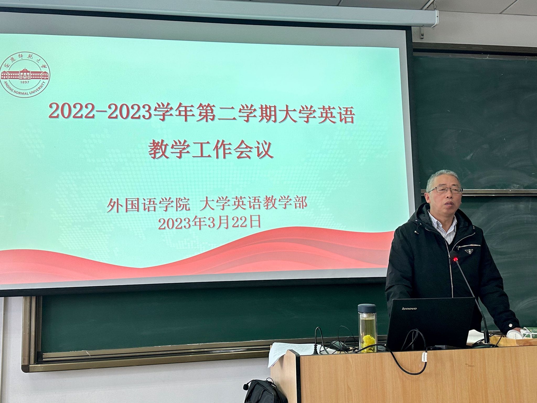 3月22日下午,九游·官方网站在E320教室召开2022-2023学年第二学期大学英语教学工作会议,九游·官方网站党委书记李亦亮、副院长江加宏、瞿宁霞及大学英语教学部全体教师参会。会议由瞿宁霞主持。