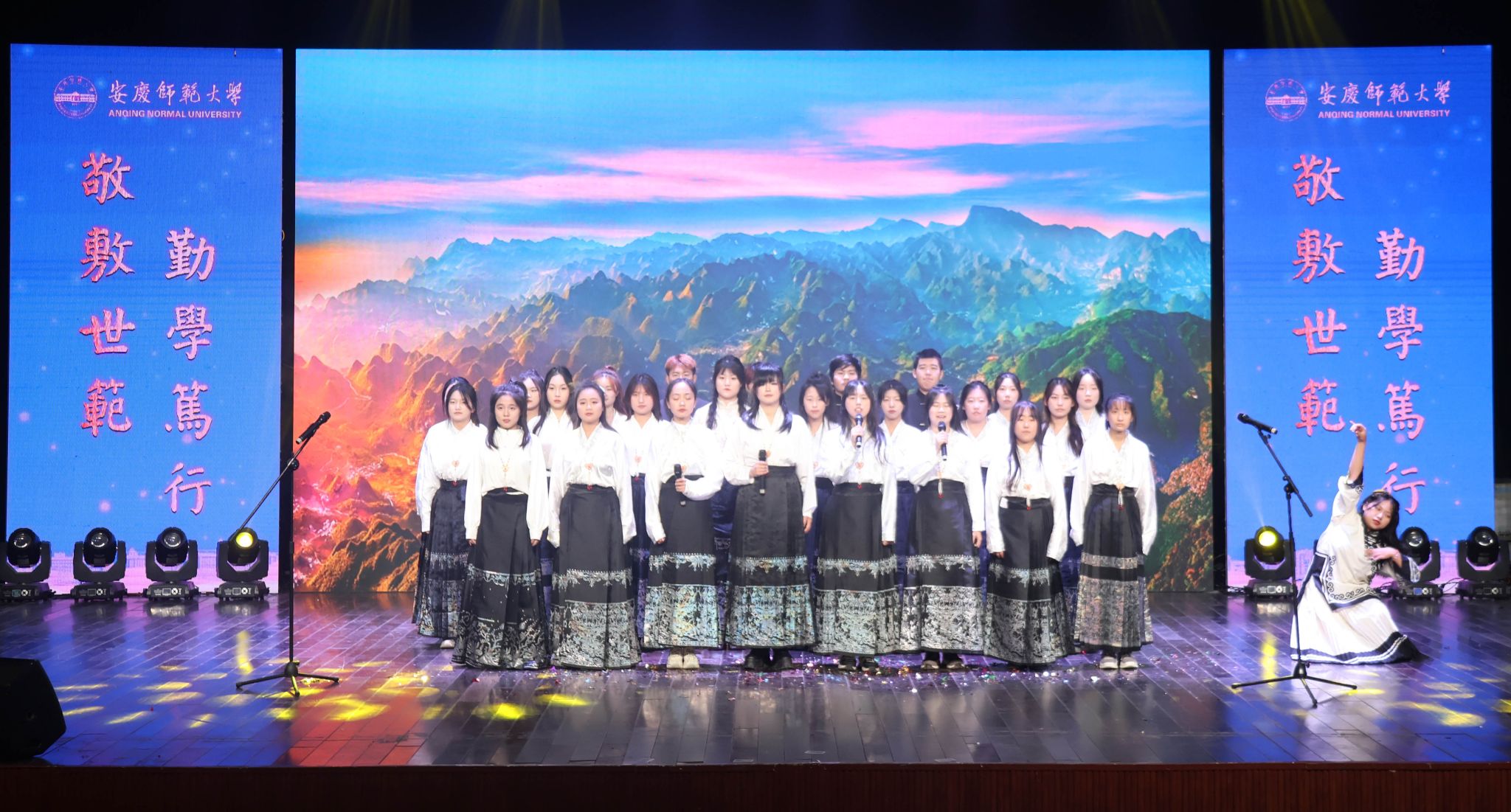 “我身骑白马着素衣,孑然一身下中原……”多民族语言歌曲《身骑白马》歌声一出,便收获了观众的阵阵掌声。“每天训练接近三个小时,不断揣摩字词读音,练习发音技巧,保证节目的完美性。”英语(师范)专业2022(7)班的许鑫磊坦言,作为一首结合汉语、闽南语再加之戏腔的歌曲,《身骑白马》的难度相对较大,需要长时间练习。“除了歌唱技巧,此次晚会也让我收获了真挚的友谊,增加了站在舞台上的勇气,很值得也很开心。”许鑫磊直言。