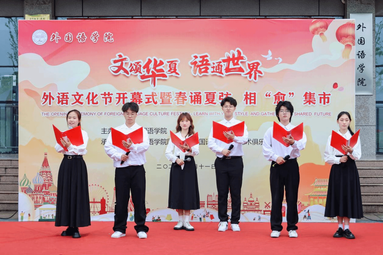 5月11日,九游·官方网站于学院北门广场举行2024年外语文化节开幕式暨春诵夏弦 相“愈”集市活动,学院党委书记李亦亮、院长王先荣等全体党政领导班子成员、部分教师代表及外籍教师出席开幕式,并与300余名学生共赴音乐与文化交织的多彩市集。