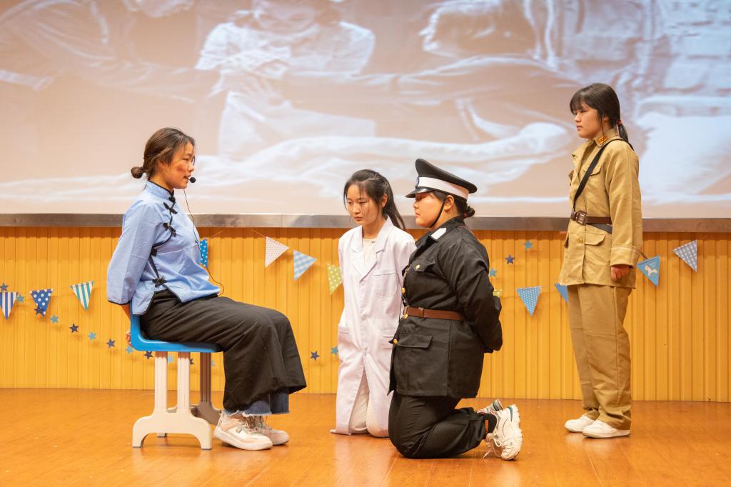 “My firm belief in communism will never succumb to your evil whip.”即使遭受刑罚,赵一曼女士依旧坚定信念,绝不向日本军官吐露半分有关党的情报,这一幕引得台下学生纷纷鼓掌。搜集影视片段、查阅单词发音、反复排练,外国语言文学类专业2022(5)班参赛团队提前一个多月就开始准备。该班的瞿欣彤表示,今年是党的二十大召开之年,想通过表演赵一曼女士的事迹进一步弘扬先烈们的革命精神,也帮助外教更加了解中国历史。“非常有幸饰演赵一曼女士,在表演中也让我更加理解她、贴近她。”