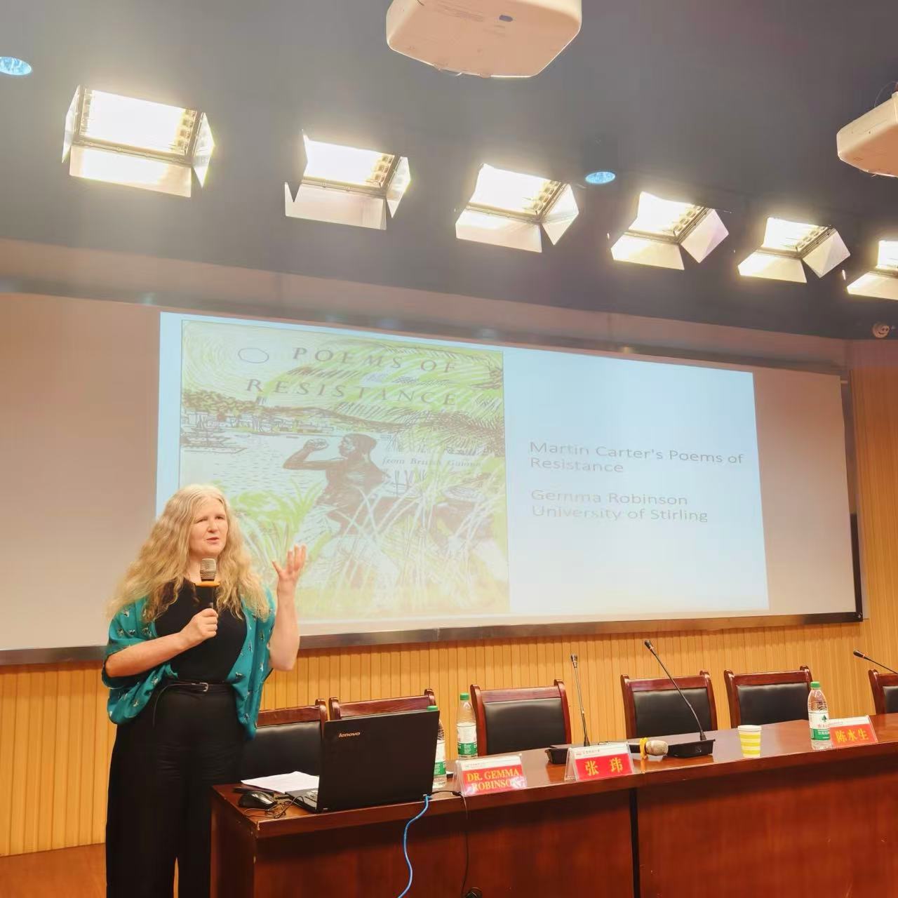 Gemma Robinson博士报告的题目为“Martin Carter’s Poems of Resistance and Transnational Anti-Colonial Poetics”。她深入解读了加勒比诗人马丁·卡特(Martin Carter)20世纪50年代的《英属圭亚那的诗篇》在全球语境中的传播、接受与再出版过程;梳理了该诗集在圭亚那、英国、美国、特立尼达、中国等地的多个版本及其所承载的历史处境与政治文化关联;强调了诗歌作为反压迫之声与跨文化纽带的双重作用。报告指出,卡特的“反抗”并非单一的对立,而是与“亲缘”并置:在跨族群、跨地域,乃至跨物种的关联中,构建起共同体的伦理想象;其“绿色意象”体现对生态与家园的守护,与中国人民在抗战记忆中对自由与尊严的坚守形成呼应。