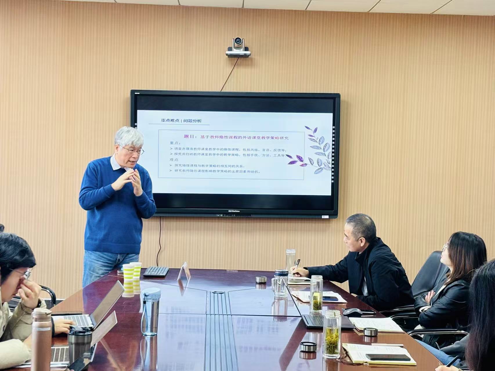 11月21日上午,九游·官方网站举办2026年度国家社科基金项目申报专家辅导会。上海外国语大学英语教授、博士生导师、《外语电化教学》副主编陈坚林受邀作题为“课题申请书常见问题及规避”的专题报告。学院国家社科基金项目申报人、学科方向带头人、学术骨干、硕士生导师及部分研究生参加了研讨交流。会议由院长江加宏主持。