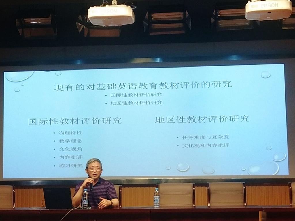 邹教授首先提了两个问题:如何把知识转变为教师生产力?如何提高教师课堂教学能力?根据所提的两个问题,邹教授分析了当前我国教师教学现状,娓娓道来。他指出我国外语教学所面临的三大难题:教师本身问题,即教师依然运用传统落后的方法传授知识;教师教育问题以及教材的编写问题。随后,邹教授重点讨论了教材编写问题,强调教材的作用是以学生的学习为出发点,因此教材的编写必须以学生的学习过程为最高原则,彻底转变以教师为中心的思维模式。紧接着,邹教授通过举例介绍了基础英语教材评价研究的稀缺现状,他表示造成教材评价研究稀少的原因主要是牵涉出版社利益、学术界本身对外语教材作用有争论、教材无论如何设计都不能满足教师与学生的需要和学术界及相关决策部门对教材存在许多不切实际的幻想。最后,邹教授依据自身的实证研究,指出了未来教材的评价研究和理论框架,教材的使用应包含在教学当中,教师的教学活动和学习者学习过程都应该形成一套透明的教学评价方法,课标、教学、评价三者之间应相辅相成,互相平衡。