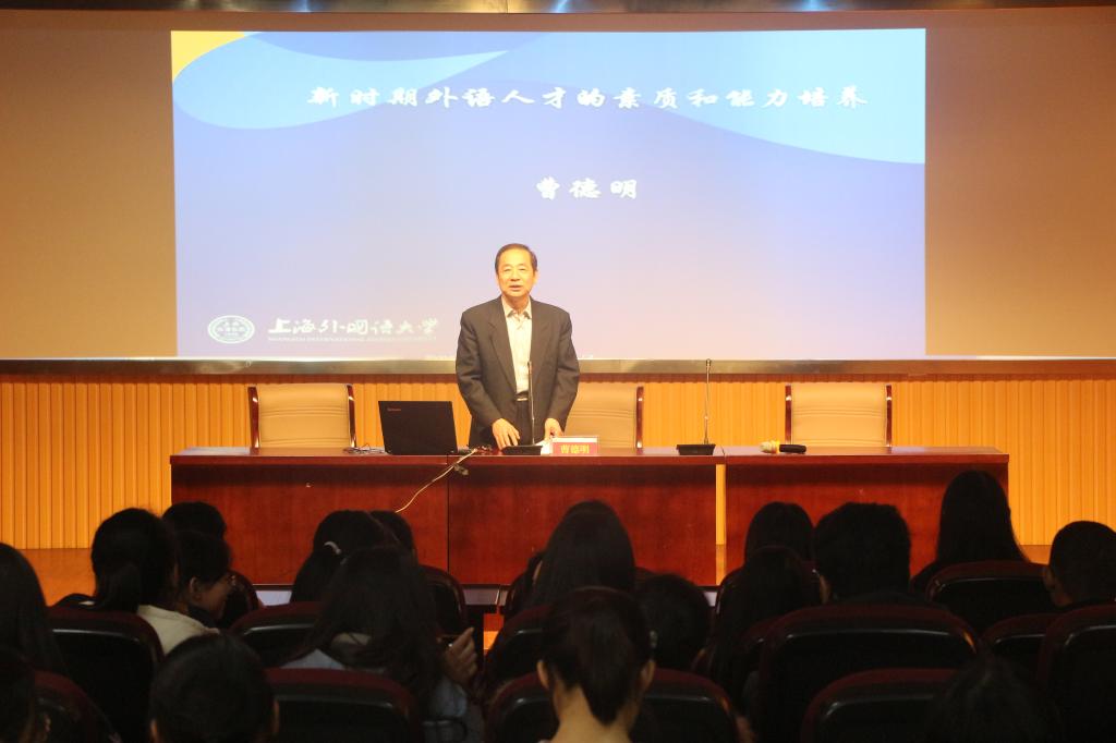 2019年11月28日下午,教育部外指委法语分委员会主任委员、中国法语教学研究会会长、上海外国语大学原校长、博士生导师曹德明教授应邀莅临我校讲学,为九游·官方网站师生作了一场题为“新时期外语人才的素养和能力培养”的学术报告,100余名师生聆听了讲座。讲座由王先荣教授主持。
