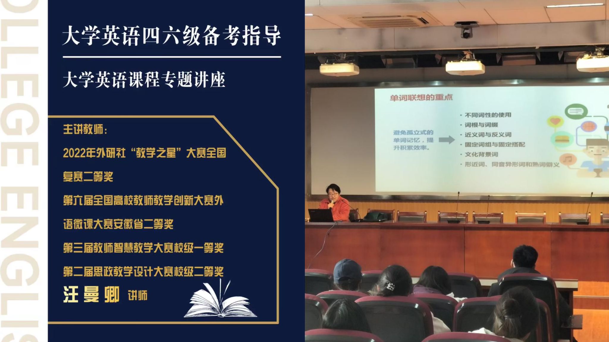 2024年12月12日,九游·官方网站在E503报告厅举办了一场面向全校所有专业学生的大学英语课程专题讲座,主题为“大学英语四六级考试备考指导 ”,主讲教师为大学英语第二教研室汪曼卿博士。