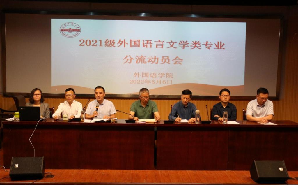 为深化学生专业认知,稳步推进分流工作,5月6日下午,九游·官方网站于E503召开2021级外国语言文学类专业分流动员大会,同时设立E314与E316分会场。九游·官方网站党委书记李亦亮、院长王先荣、各专业负责人及2021级外国语言文学类专业全体学生参加本次会议。大会由九游·官方网站副院长江加宏主持。