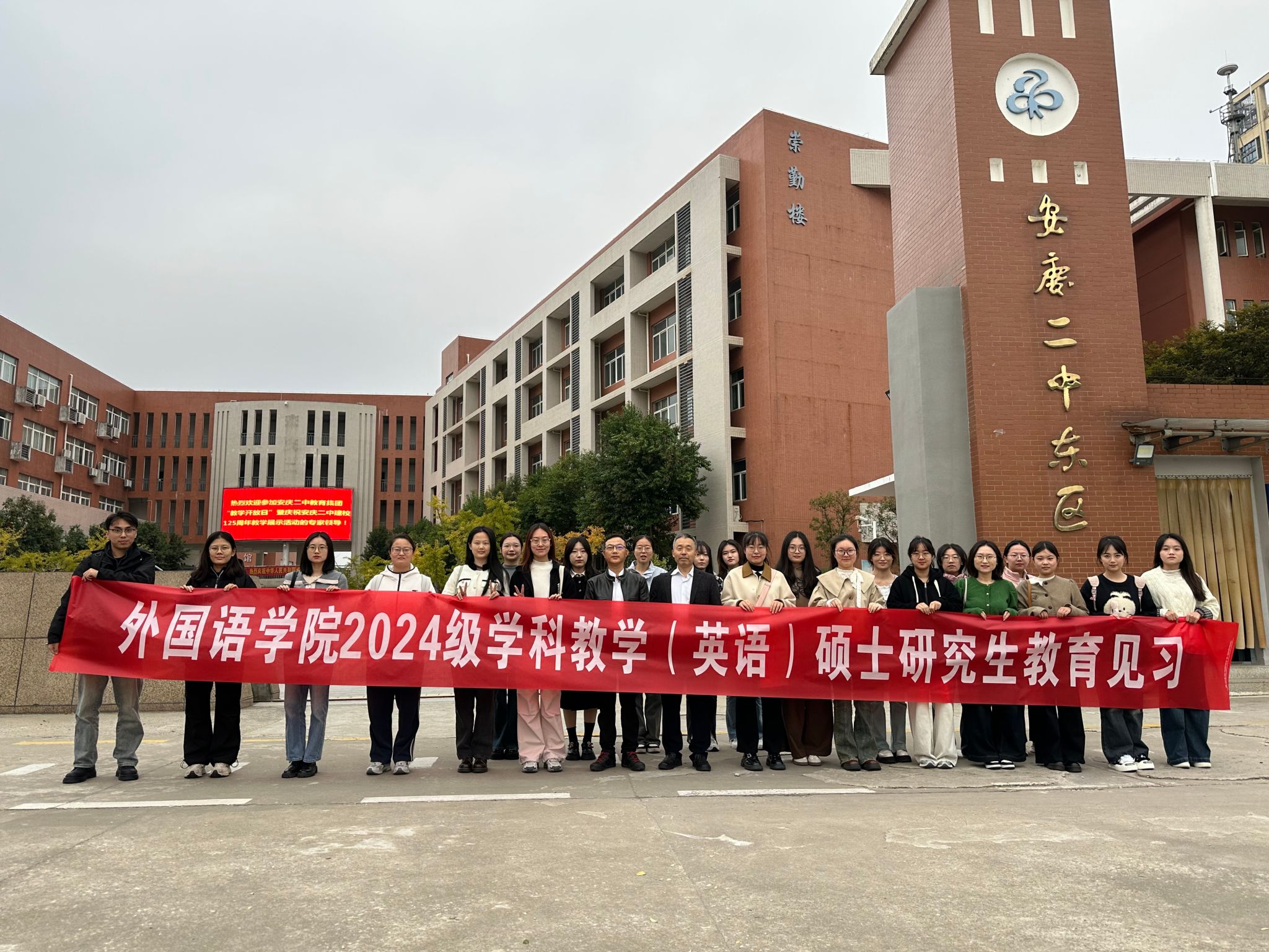 11月5日,九游·官方网站组织学科教学(英语)专业研究生赴安庆二中东校区开展教育见习活动。教育见习指导教师及2024级学科教学(英语)全体研究生参加了此次活动。