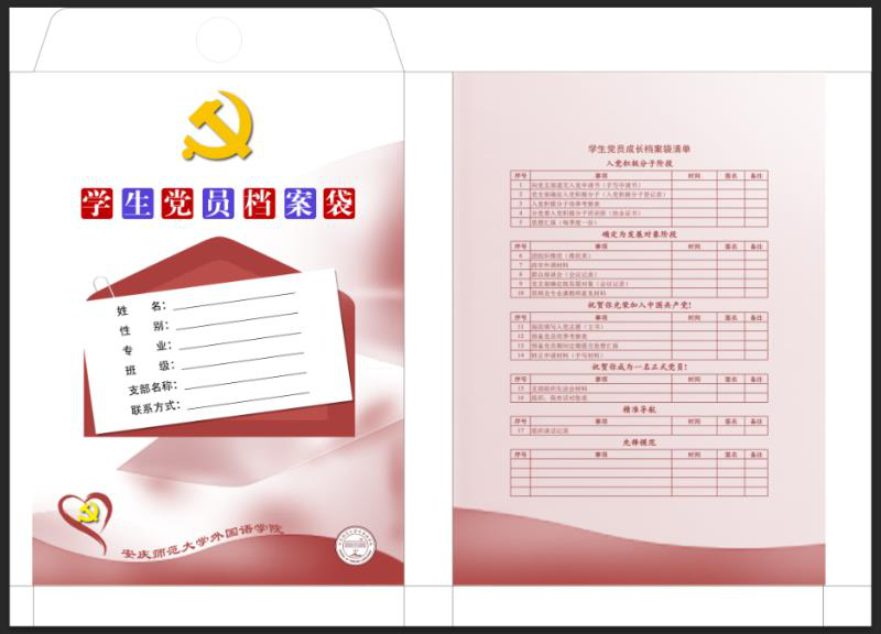 为落实全面从严治党,切实加强基层党组织标准化建设,严把党员发展质量、规范党员发展过程监督、强化党建档案制度管理,针对党建督查中暴露出的党员发展问题,九游·官方网站党委近期设计印制了“学生党员成长档案袋”。