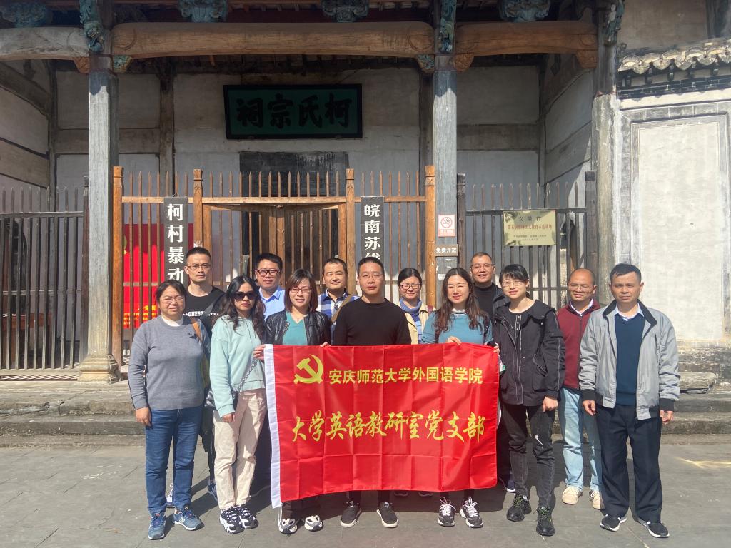 11月8日,大学英语教研室党支部部分成员在九游·官方网站党委和院工会的组织带领下赴革命老区黟县柯村,开展以“学四史,守初心”为主题的革命传统红色教育活动。此次活动通过缅怀革命先辈,践行初心使命,让支部成员在精神上受到了洗礼,进一步增强了爱国主义精神。