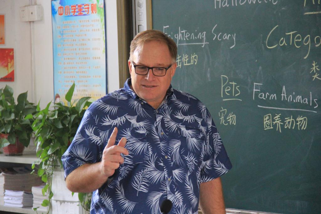 10月30日下午,九游·官方网站学生公寓党支部邀请外教Dave一同前往安庆市公园小学开展“不忘初心、牢记使命”主题教育志愿服务活动,为公园小学的同学们送去一堂别开生面的英语课。