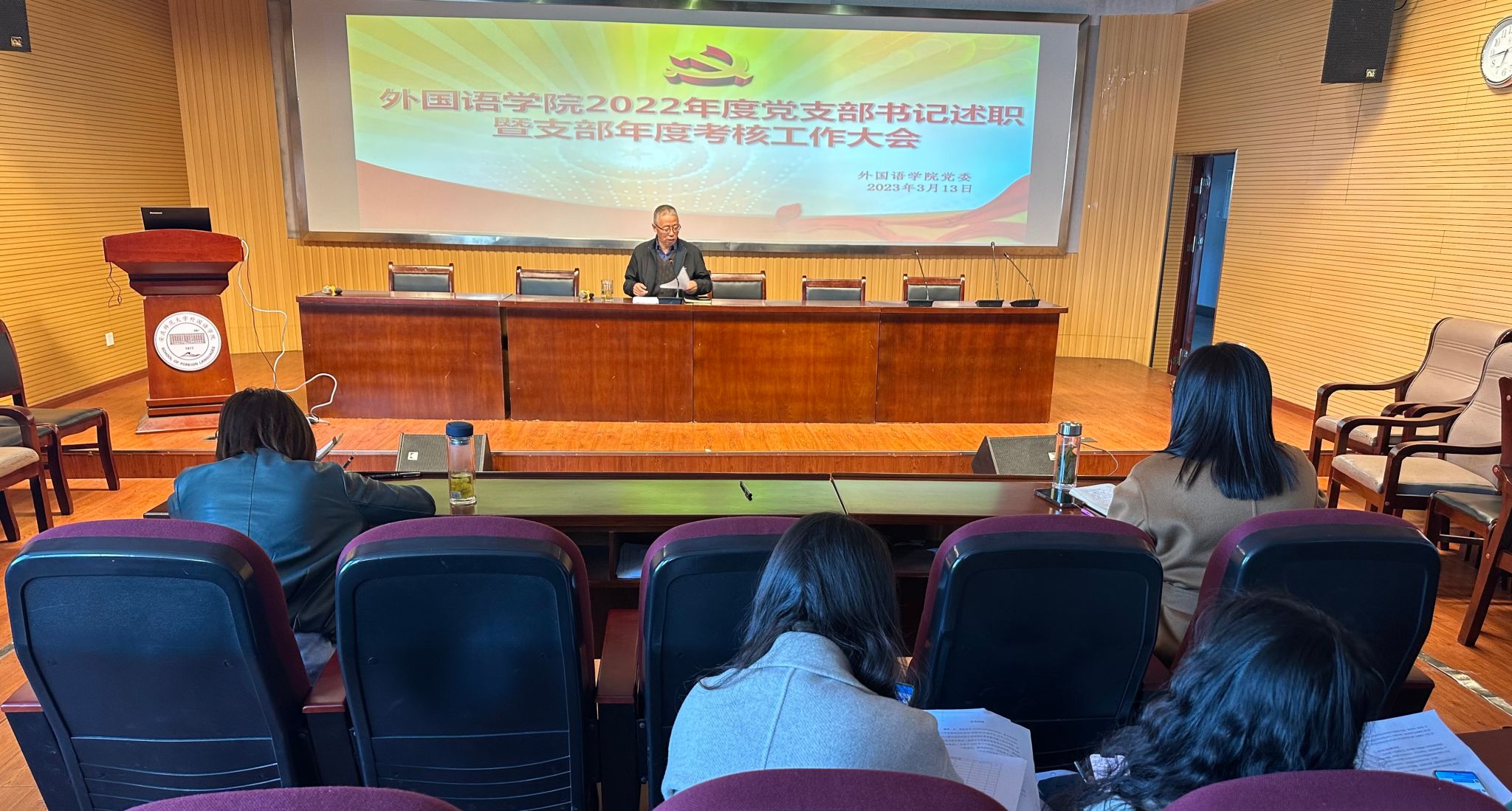会上,学院12个党支部书记逐一汇报了个人过去一年抓支部党建工作的主要措施和成效、存在的问题和不足以及加强和改进工作的思路和措施。