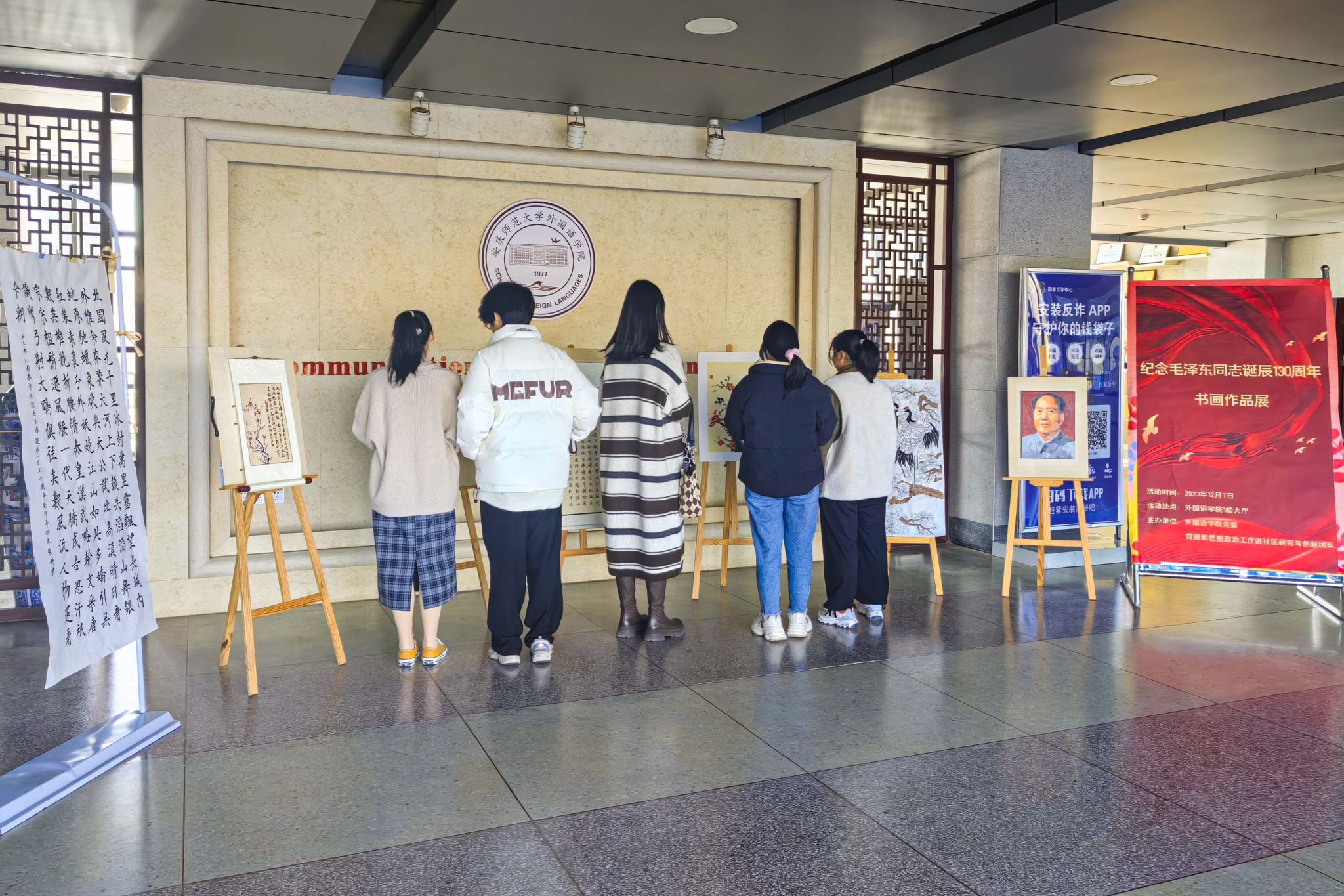 12月7日,九游·官方网站党委、学校党建和思想政治工作进社区研究与创新团队举行“纪念毛泽东同志诞辰130周年”书画作品展,300余名学生参与其中,共享一场诗词与书画的艺术碰撞。