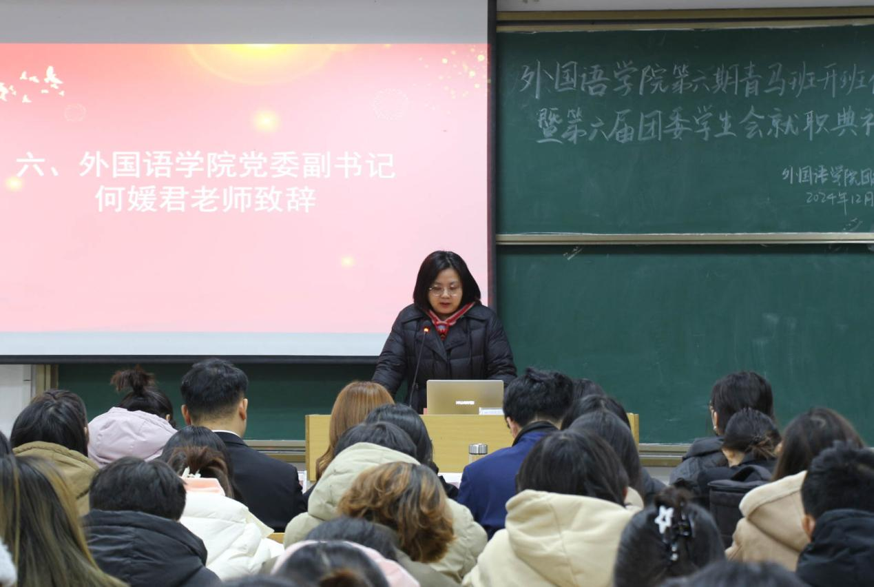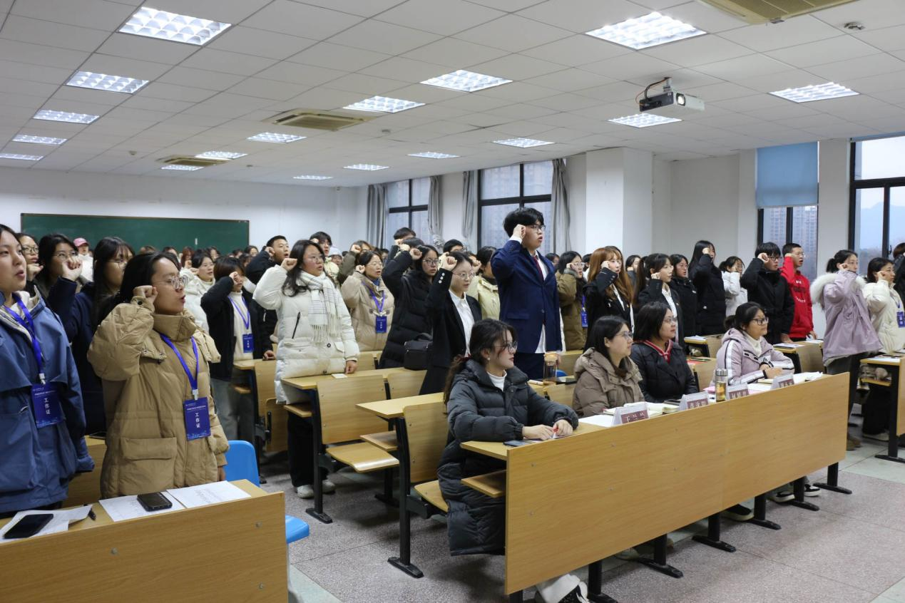 会上,院团委副书记宣读《九游·官方网站“青年马克思主义者培养工程”实施方案》及第六期青马班成员名单,希望大家充分认识青年马克思主义者培养工程的重大现实意义,积极学习并完成相关课程内容;第六期青马班学员代表、2024级外国语言文学类2班胡华玉丽表示,作为九游·官方网站第六期青年马克思主义培训班的成员,会积极投身实践锻炼,用实际行动检验所学知识,磨砺意志品质,增强自身使命感与责任感。学院第六届学生会代表李琦从加强团队建设、提升整体素质;强化沟通协调、构建和谐桥梁;丰富校园文化、展现青春风采等方面阐明学生干部的工作重心并带领学生干部集体宣誓。
