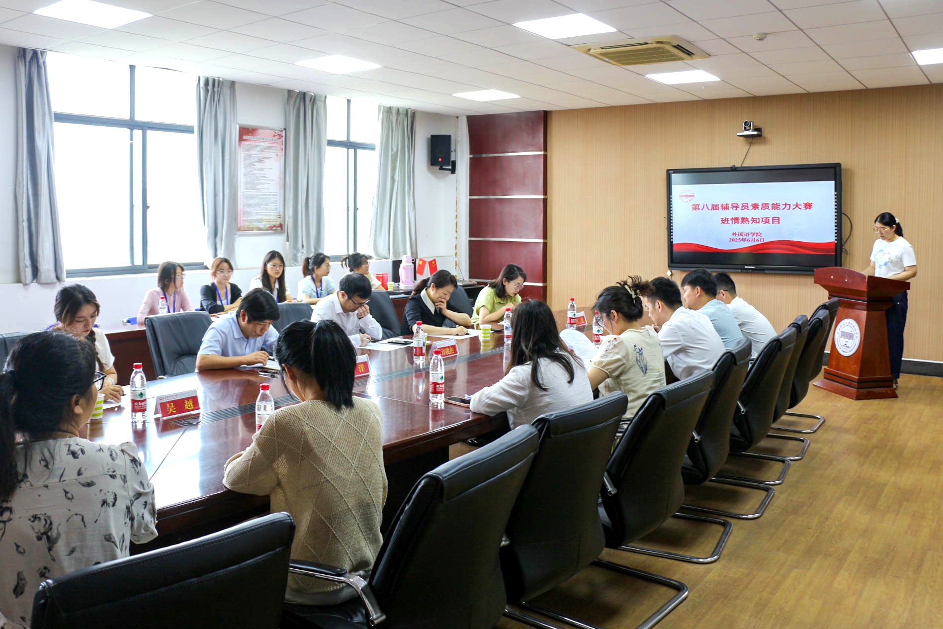班情熟知项目主要考查参赛选手对专业认知、班级特点以及每一名学生基本情况的把握程度。比赛现场气氛紧张而有序,参赛选手需连续完成 “班情分析、看图识人、精准描述” 三大环节考验。在班情分析环节,各位参赛选手从辅导员工作职责出发,结合所带班级的班情和特点,展示了独特的带班思路与育人心得。在看图识人和精准描述环节,各位辅导员老师凭借“火眼金睛”迅速且准确地辨认出学生照片对应的姓名、籍贯、政治面貌等基础信息,甚至能精准说出学生的兴趣爱好、获奖经历等个性化细节。