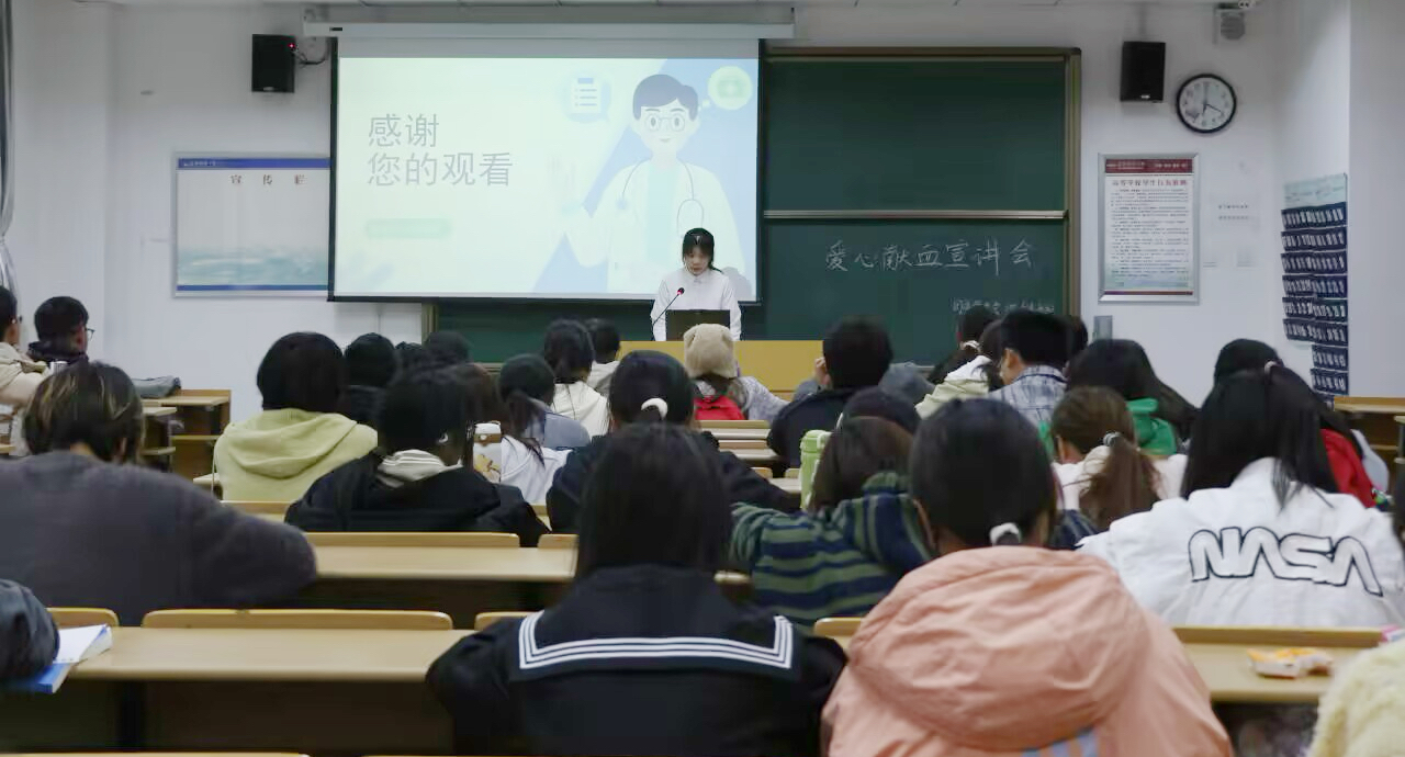 线下动员聚合力。九游·官方网站在E316教室举办爱心献血动员大会,近百余名学生积极报名参加。会上,宣讲同学结合自身实际与真实案例,详细讲解了献血的意义、流程及注意事项,用真挚的语言传递“奉献爱心,点亮生命”的正能量。大会现场还展示了往届献血活动的精彩照片,直观呈现同学们的奉献瞬间,进一步激发了在场同学的参与热情。