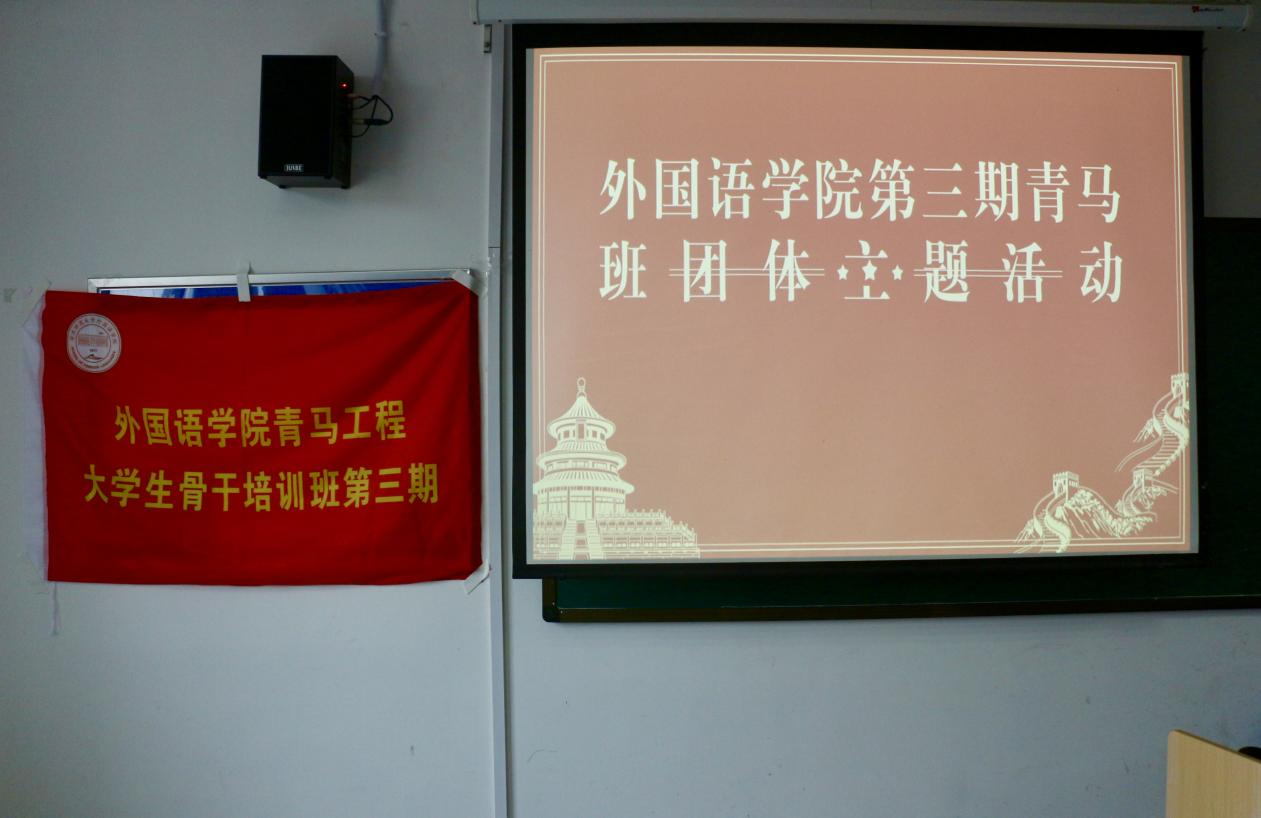 在对革命志士的青春告白之后,青马班全体学员发挥专业特长,将红歌《我和我的祖国》翻译成英文,字句间传递出青年学子的爱国心、报国情、强国志,也体现了当代大学生学贯中西、博古通今的学术追求,大家情不自禁地哼唱起来。在激扬动听的歌声中,本次团日活动接近尾声。最后,全体学员在团旗下合影留念,主持人致辞并宣布活动圆满结束。