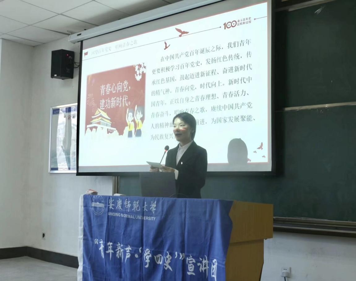 10月12日,安庆师范大学“青年新声·‘学四史’”宣讲团于E314开展第二季校内巡回党史宣讲活动,九游·官方网站2021级学生代表近130人参会听讲。