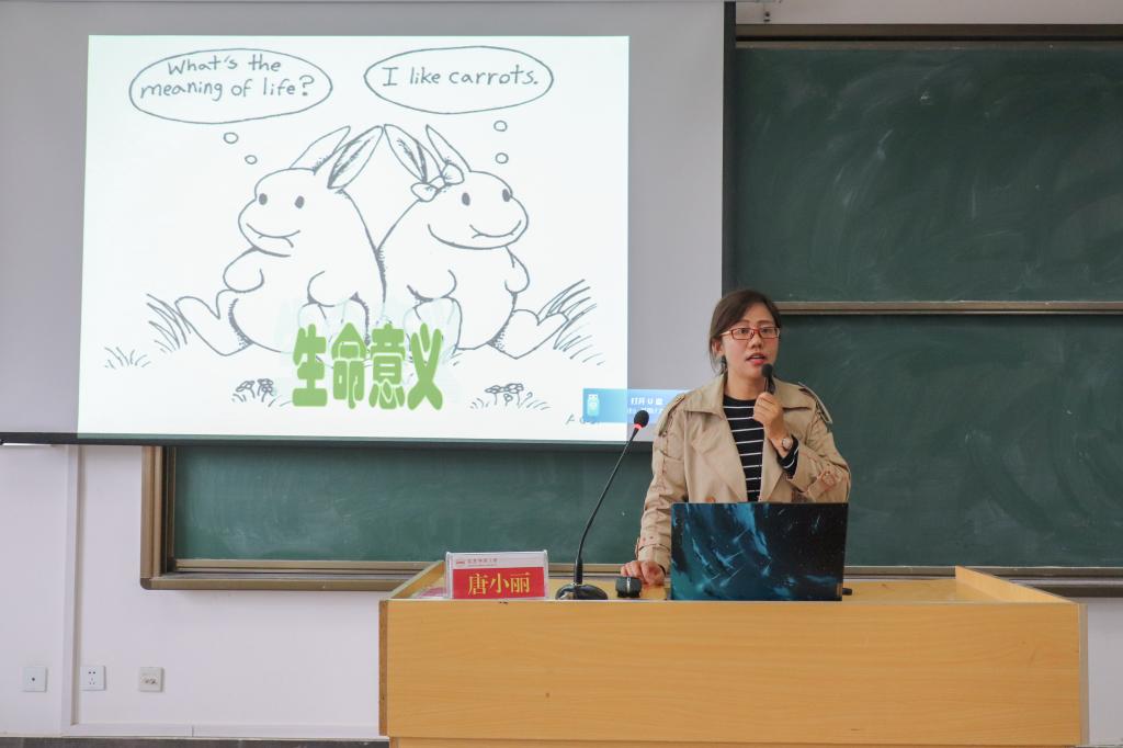 唐小丽首先从“积极心理学”的定义讲起,由快乐、自尊、希望等词语引出积极心理学领域中的关键词——幸福。“积极心理学以研究人的幸福为中心,包含积极情绪、积极人格与积极社会组织系统三个层面。”唐小丽通过“一个中心,三个基本点”具体阐释了积极心理学主要的研究内容。随后,通过列举中国共产党党员数量、基层党委数量和增幅等数据,唐小丽深入浅出地分析了当前新形势下高等学校学生党建现状。