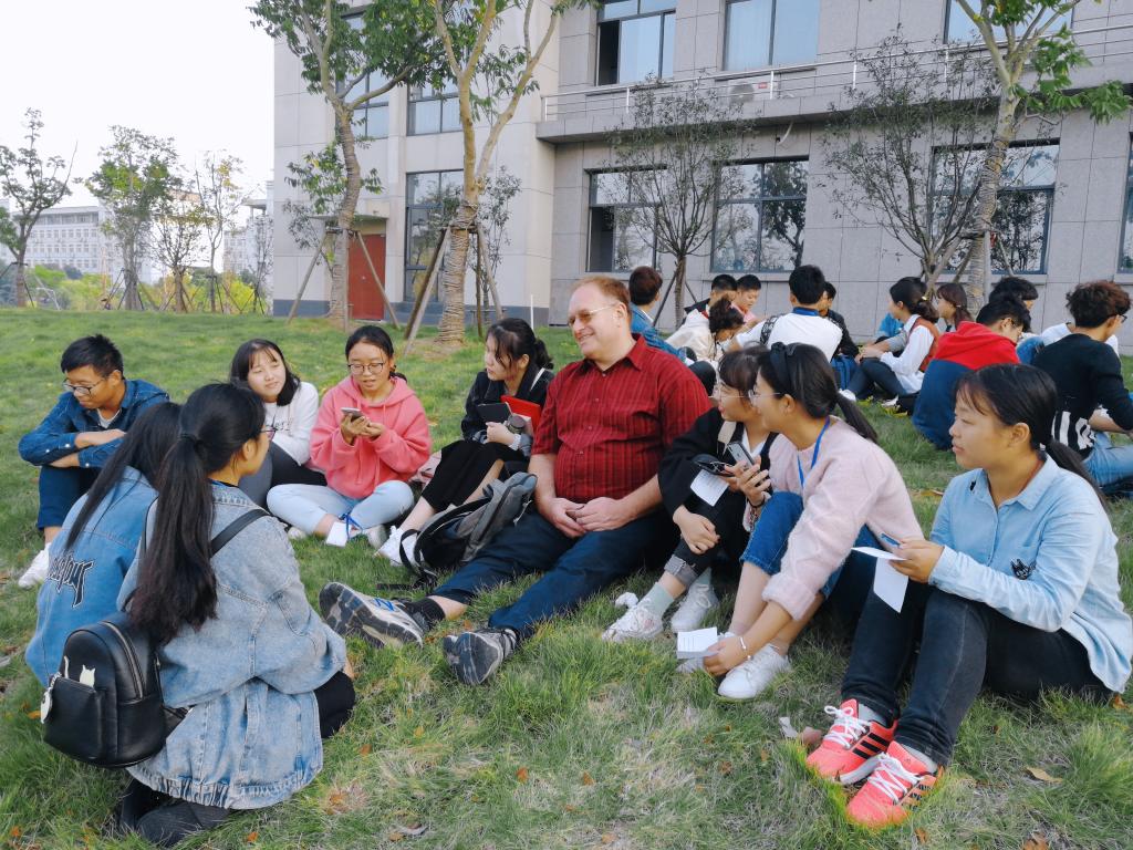 你尝试过在室外与别人用英语聊天吗?10月31日下午,大学生英语爱好者协会在九游·官方网站北门草坪上成功举办了户外英语角活动,来自不同学院不同专业的30余名同学和外教Dave共同参与了本次活动。