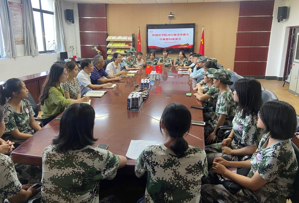21日下午,学院召开2021级省外新生中秋慰问座谈会,学院领导班子、新生辅导员老师以及来自云南、甘肃、山东、湖北、四川、山西、江苏的20余名研究生、本科生参加了座谈会。
