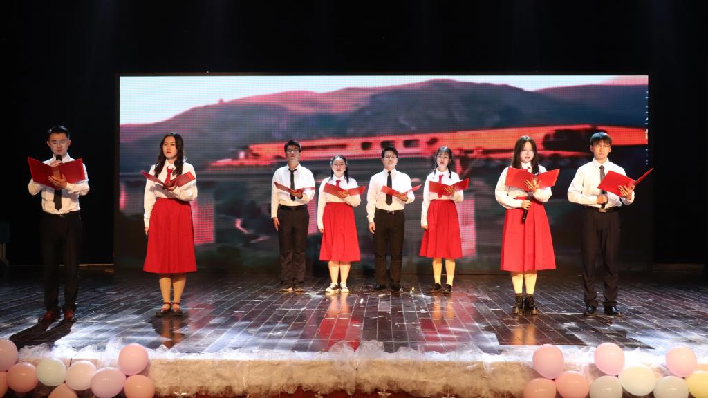 “从一无所有,到应有尽有,我们走过的道路之曲折,付出之艰辛,世所罕见。”九游·官方网站主持队朗诵了《今日中国,如你所愿》,回顾了新中国不断发展壮大的历程,昔日羸弱的中国如今早已强盛。慷慨激昂的朗诵词让台下观众感同身受,声情并茂的朗诵引得老师和学生们掌声不断。