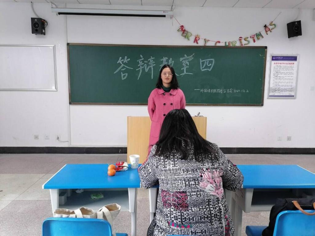 正式答辩开始前,同学们有序地从读书园工作人员处领取《九游·官方网站学生读书情况验收登记表》,按照顺序依次进场。现场答辩时,答辩同学于10分钟内使用英语或法语向主持老师汇报所读书目,介绍读书笔记的主要内容。随后,评委老师根据各同学的答辩内容提问,同学们一一作答,条理清晰,见解深刻。据悉,答辩选手的成绩将分为A、B、C、D、E五个等级并反馈给辅导员,届时优秀的读书心得也会提供给同学们借鉴。