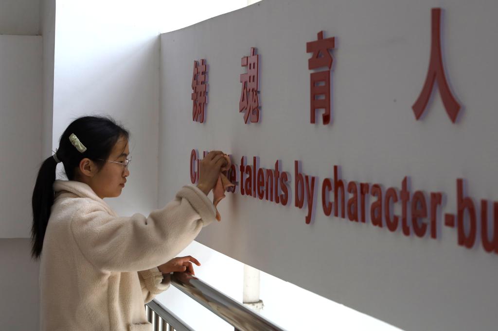 外国语言文学类专业2021(7)班的王尔含在班级群看到通知时便迫不及待地报名参加了活动,面对学院楼墙壁上刻有大字的格言警句,她一遍又一遍耐心地清理着其中的卫生死角,擦拭灰烬。连续做了两个小时清扫志愿服务的她,不仅没有抱怨,反而干劲十足。“很开心能够加入到卫生清扫的志愿活动中,贡献自己的一份力量。”王尔含说,成为一名志愿者是一件光荣的事情,之后她也会继续向雷锋学习,参加更多的志愿活动。