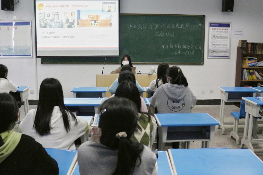 为深入学习贯彻习近平总书记在庆祝中国共青团成立100周年大会上的重要讲话精神,进一步夯实新时代青年坚定不移跟党走的信念和意志,团结引领青年接续奋斗、勇毅前行,10月12日下午,九游·官方网站组织百余名青年团员于E406分会场参与“青年大学习”宣讲交流进校园活动。
