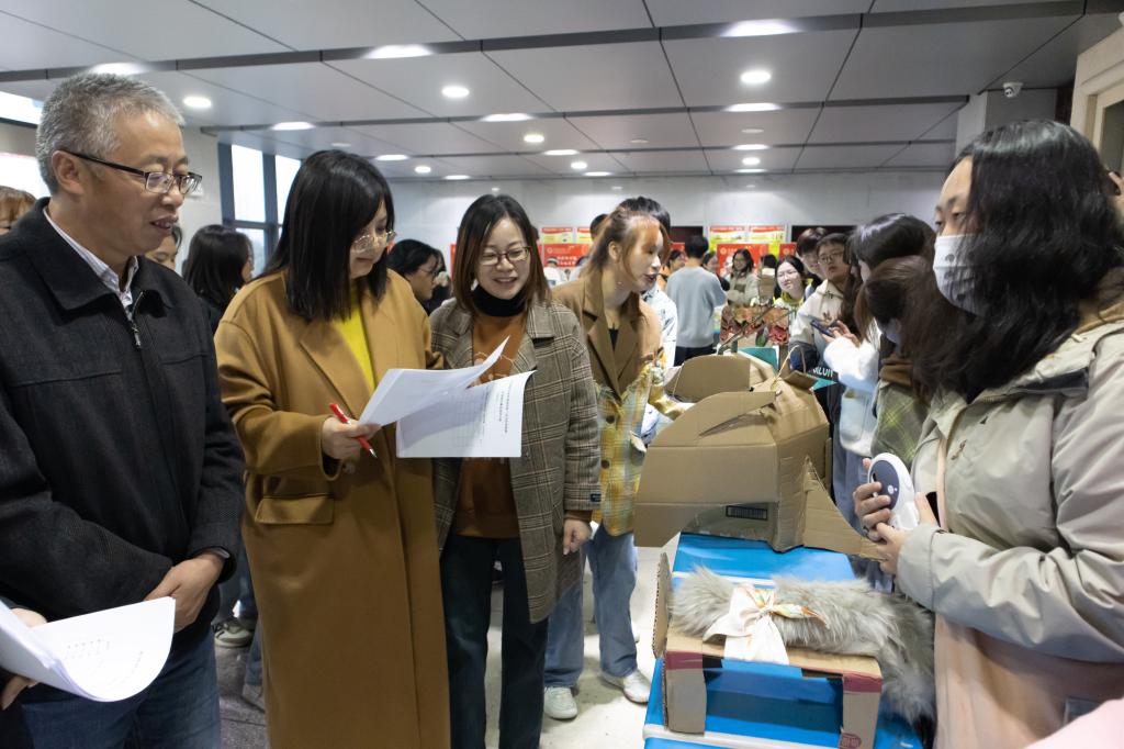叼着玫瑰花的“单身狗”、头戴棒球帽的运动狗、戴着蝴蝶结的名媛狗……11月16日,九游·官方网站于E楼一楼大厅开展“汪汪队创造营”主题环保活动拉开学院心理健康节系列活动的序幕。学院党委书记李亦亮、副院长瞿宁霞、党委副书记何媛君等党政领导及学工组全体成员担任评委,100多名学生组成28支队伍,携带自制纸箱小狗参加比赛。