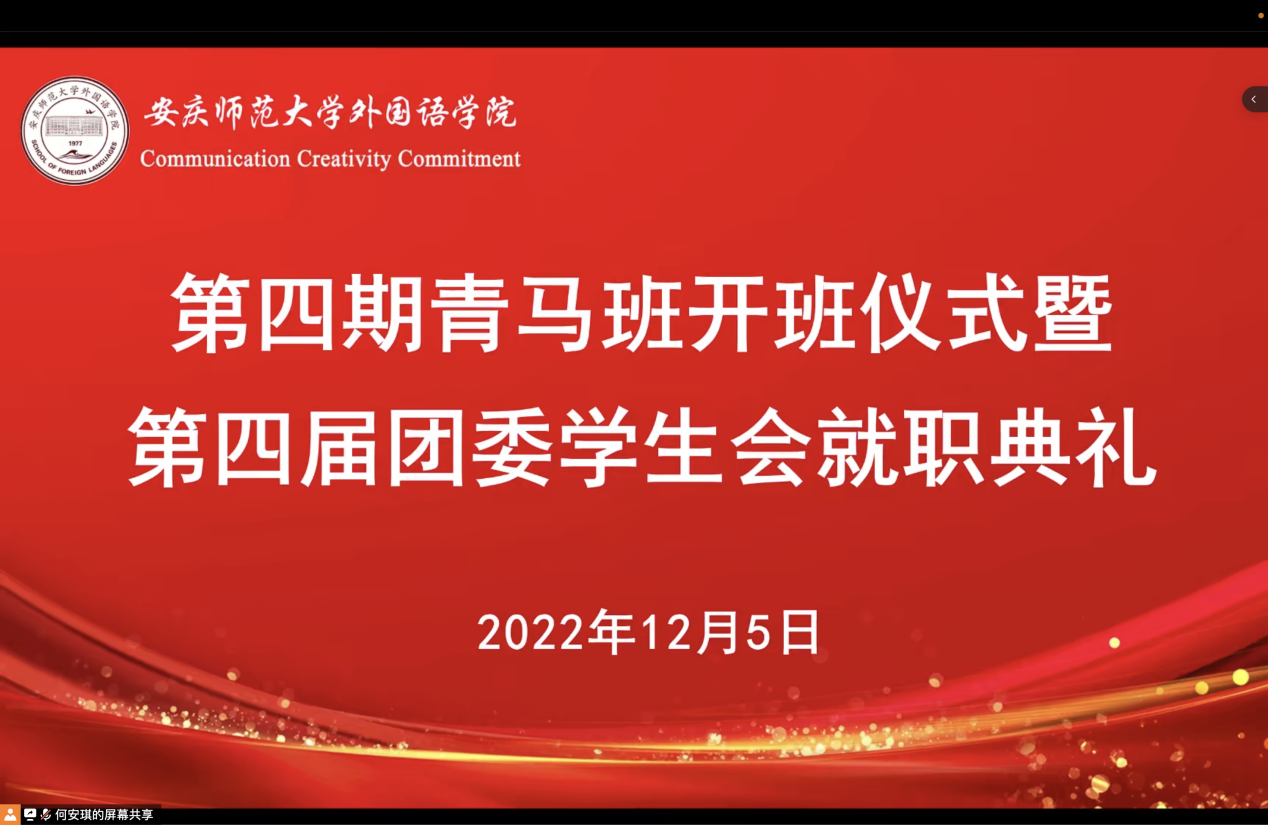 12月5日下午,九游·官方网站第四期青马班开班仪式暨第四届团委学生会就职典礼于线上举行。学院党委副书记何媛君、学工组全体教师及学生骨干参会,会议由学院团委负责人主持。
