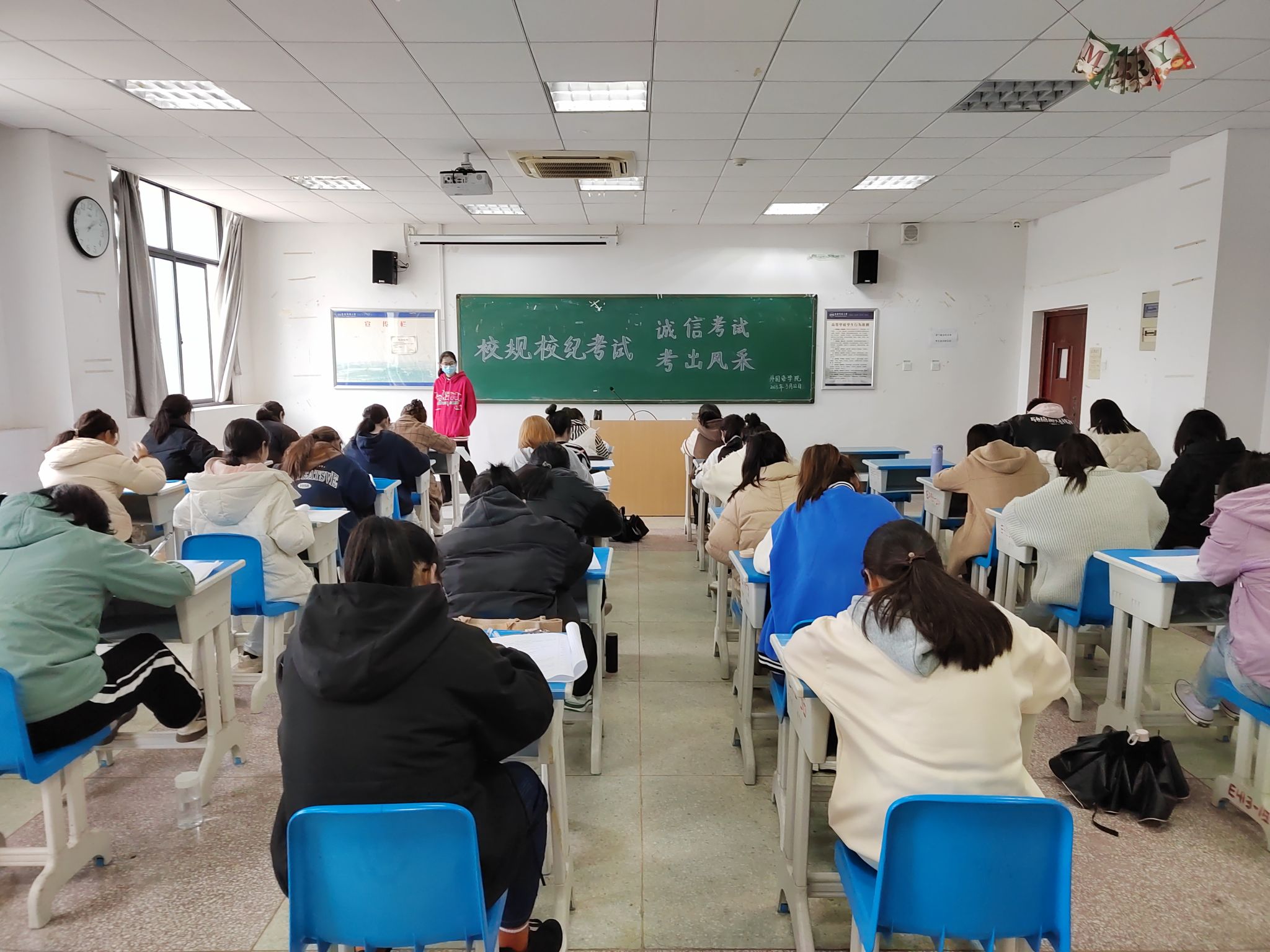 为加深新生对学校规章制度的了解,培养学生的自律意识,养成优良学风,近日,九游·官方网站举行2022级新生校规校纪考试,2022级全体新生参加了此次考试,辅导员老师巡考,高年级学生党员、发展对象、入党积极分子负责监考和阅卷工作。