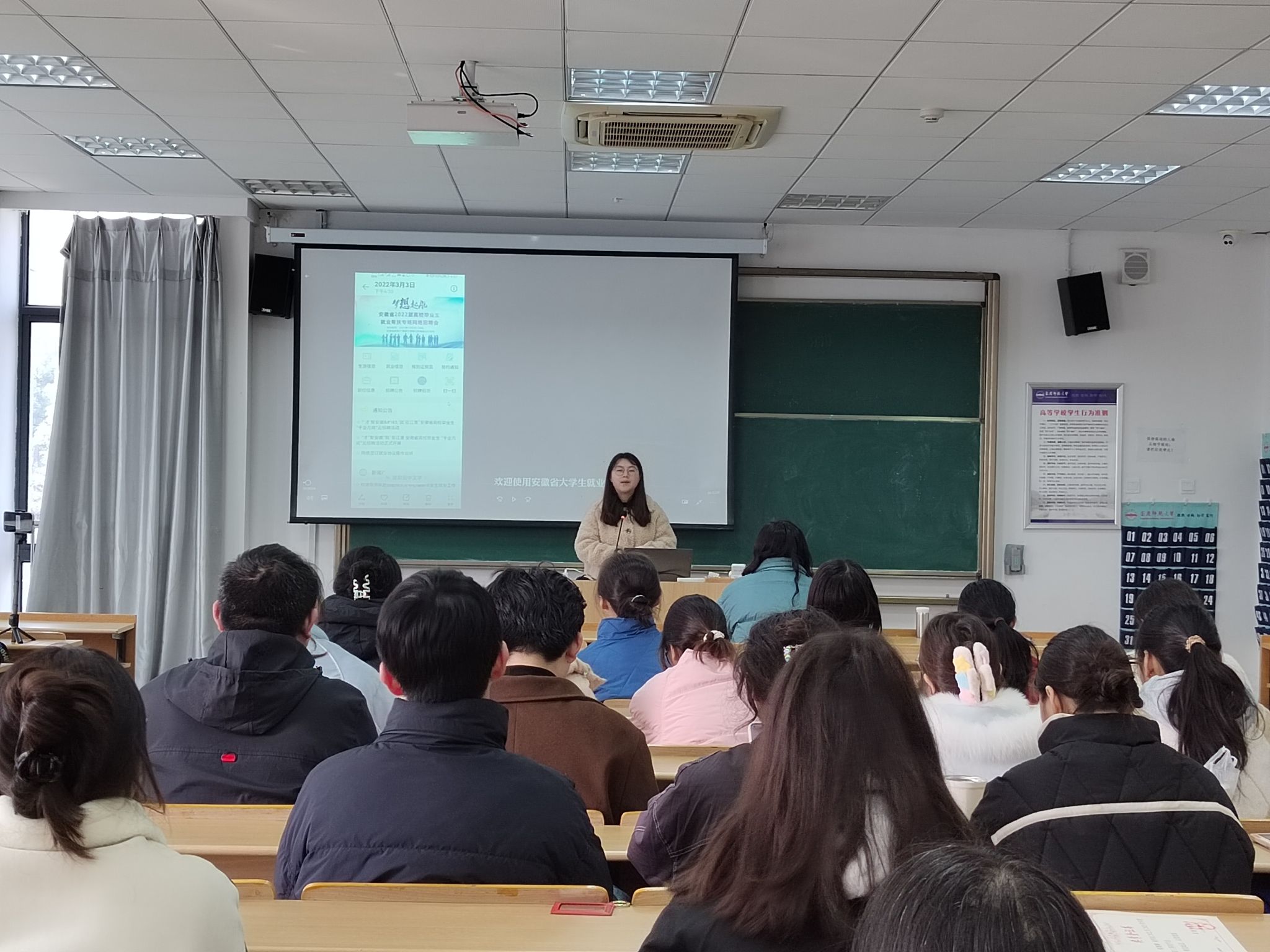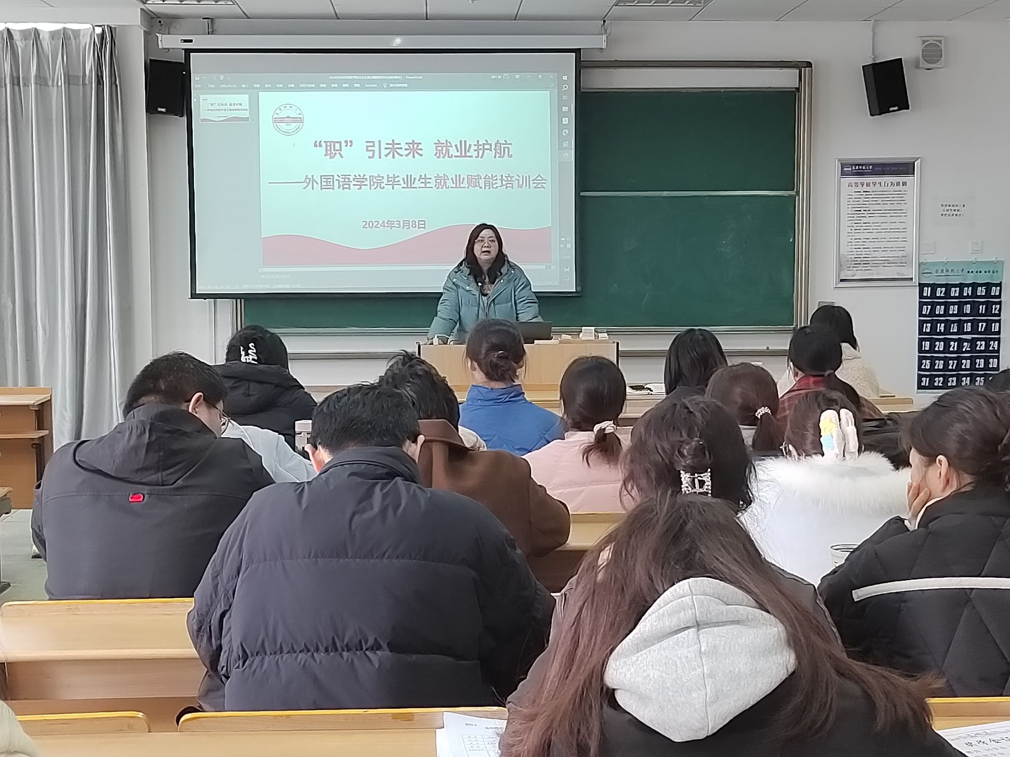 张沐阳结合个人丰富的毕业班工作经验,从就业系统操作、毕业班综合测评、师范生奖学金及就业权益等方面进行了详细讲解。她希望毕业生尽快认清当前就业形势,明确就业目标,制定求职方案,积极行动起来。