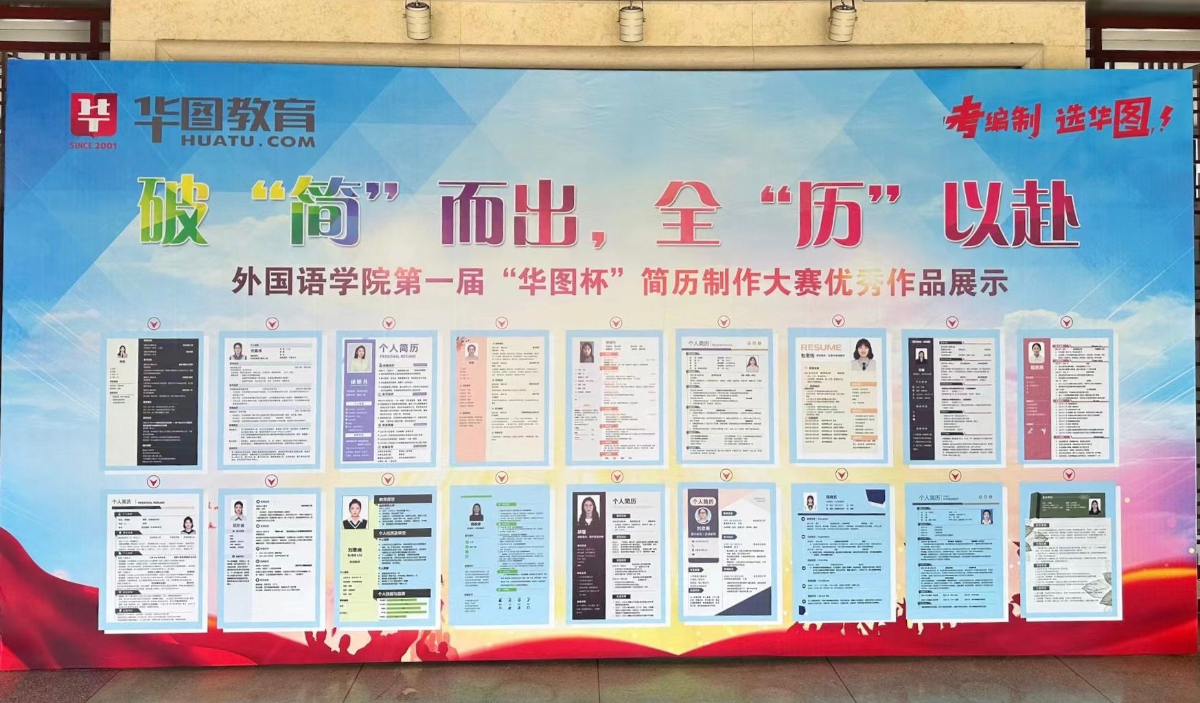 本次比赛共评选出70份优秀作品,4月22日下午,学院在一楼大厅开展优秀简历作品展。此次活动汇聚了来自不同专业、不同年级的学生的个人简历,充分展现了学生们在简历制作方面的才华与创意。此次展示会不仅为同学们提供了一个展示自我的平台,更是一次难得的学习机会。同学们纷纷表示,通过观摩他人的优秀作品,不仅拓宽了自己的视野,也激发了自己在简历制作方面的灵感和动力。
