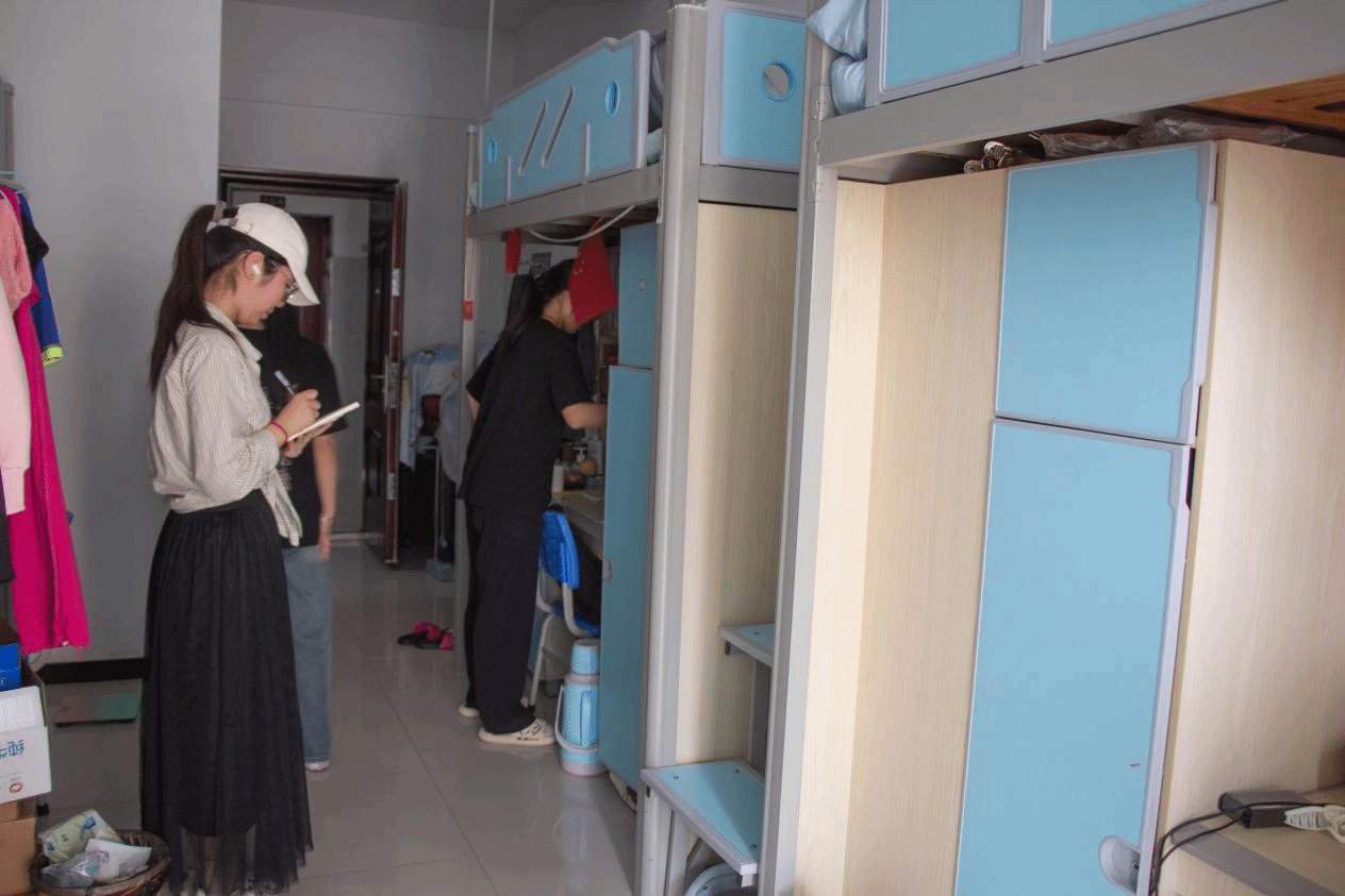 插座、线路等基础设施是否安全、是否违规使用大功率电器、外出时是否关闭总电源、是否堆放杂物……排查中,寝室长针对各类安全隐患问题进行记录,并要求相关学生立即进行整改,确保宿舍环境安全、整洁。