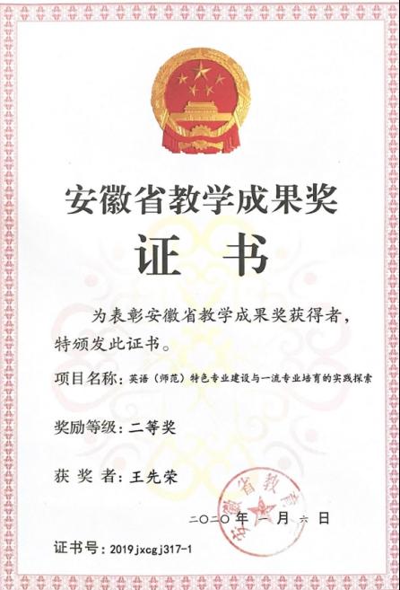 英语专业先后获批为国家级特色专业建设点(2010)、首批国家级一流专业建设点(2019),两次入选省级“卓越英语教师培养计划”项目建设,并于2021年顺利通过教育部师范类专业二级认证。在2022年校友会中国大学英语专业排行榜单中,英语专业位列全国并列第50名,在安徽省高校中与安徽大学、安徽师范大学并列第一;在安徽省外国语言文学类专业评估中,英语专业获A+等次,法语专业获B等次。商务英语专业获批为省级综合改革试点专业(2015),翻译专业获批为省级品牌专业(2017)。